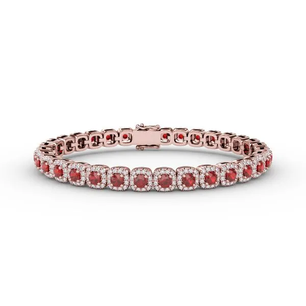 Cushion Cut Ruby and Diamond Bracelet Castle Couture Fine Jewelry Manalapan, NJ