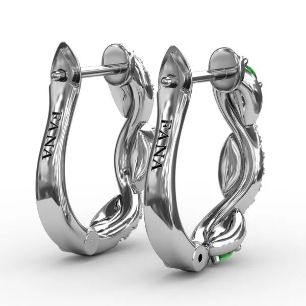 Emerald And Diamond Swirl Hoops  Castle Couture Fine Jewelry Manalapan, NJ