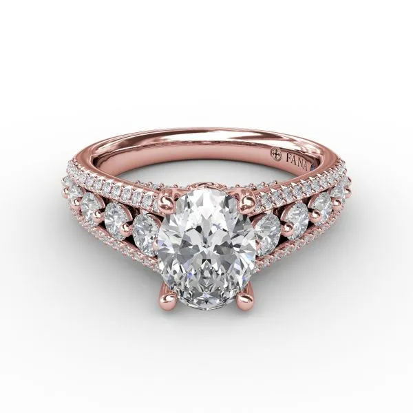 (732) 617-2168Classic Oval Diamond Solitaire Engagement Ring With Triple-Row Diamond Band